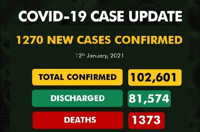 The Nigeria Centre for Disease Control (NCDC) has recorded 1,270 new cases of COVID-19, bringing the total number of infections in the country to 102,601.