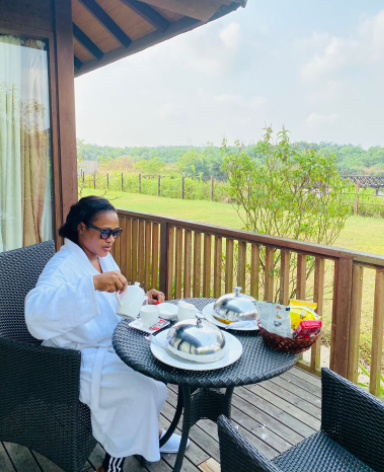 She took out time with her Pastor husband to relax at a resort.