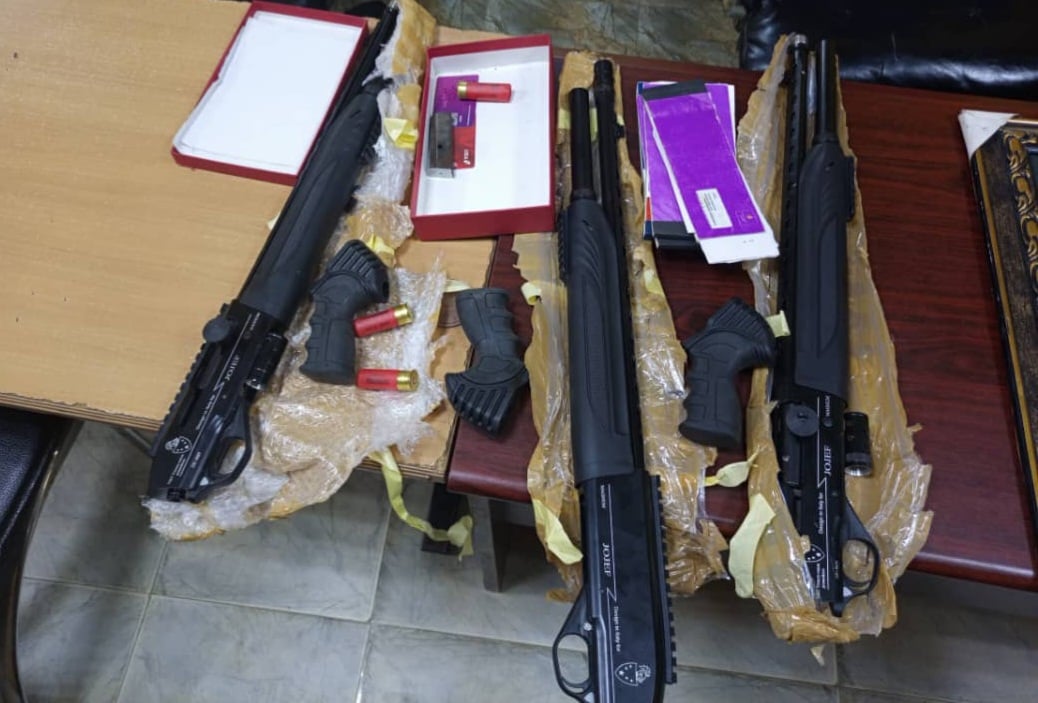 Officers found three pump action rifles, one Beretta pistol magazine, one expended 9mm ammunition, one expended and three live cartridges and a picture frame.