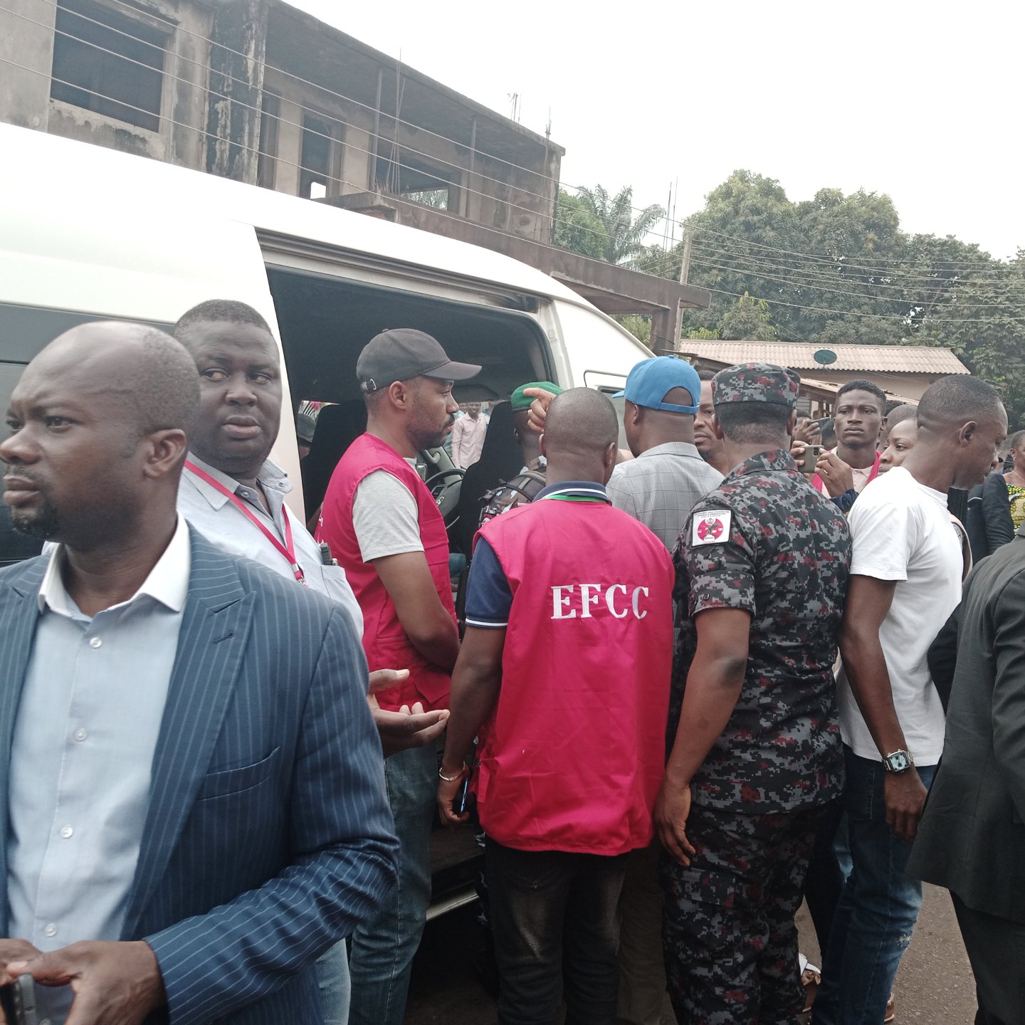 Officials of the Economic and Financial Crimes Commission, EFCC, have arrived at the polling unit of the presidential candidate of the Labour Party, LP, Mr Peter Obi.