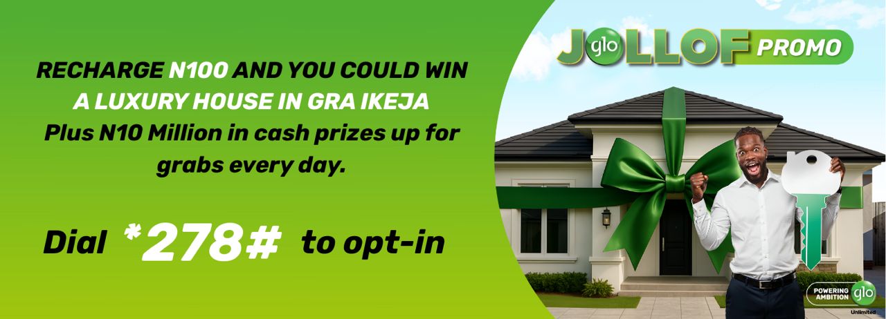 “Upon acceptance, their mobile number (MSISDN) is included in the offer for a chance to receive the airtime reward. Regardless of whether a customer accepts the Freemium Offer or not, they will also be automatically subscribed to the Jollof Premium Club. This premium subscription gives every customer a daily chance to win major prizes, including up to N10,000,000 cash prize and grand prize of a house in Ikeja GRA”, Glo explained.