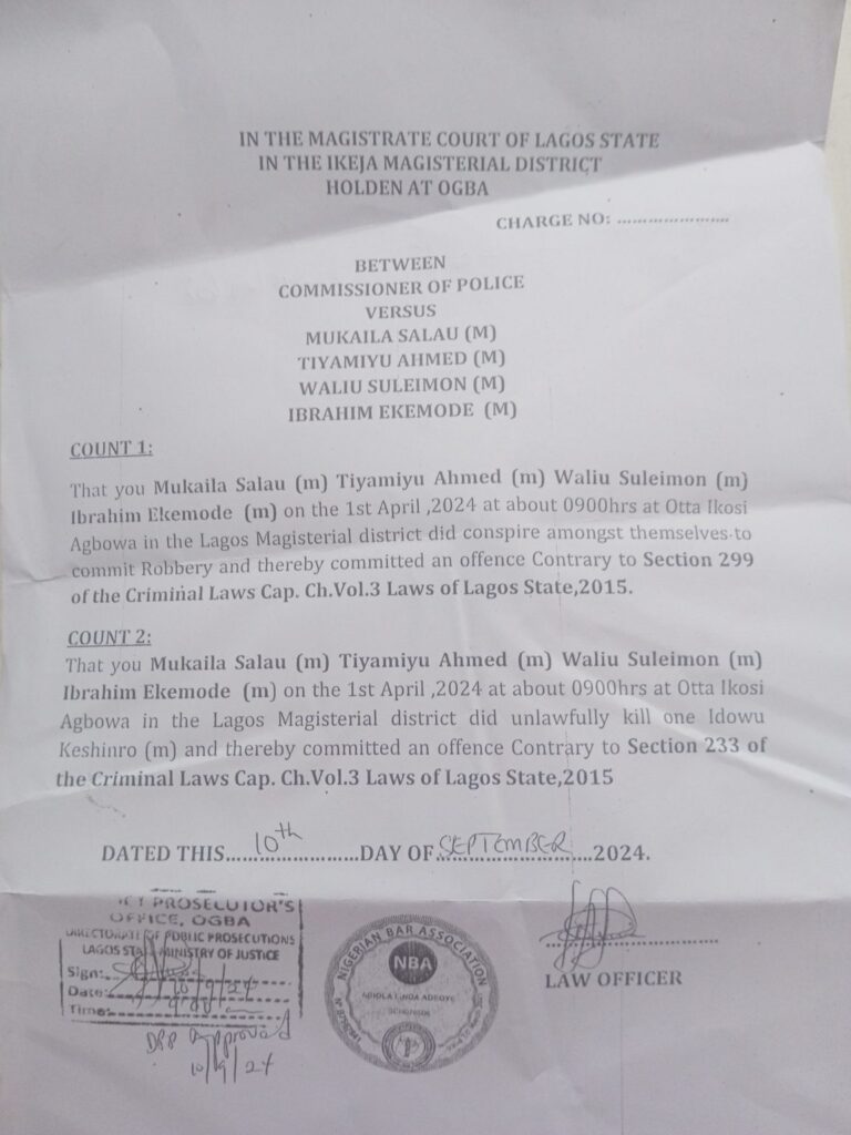 The ongoing murder trial of Idowu Keshinro, a staff member of Ikosi-Ejirin Local Government, was adjourned today at the Ogba Magistrate Court due to the absence of several key suspects. The hearing, previously adjourned to November 26th, 2024, was postponed until Thursday, November 28th, 2024. The suspects, identified as Mukaila Salau (AKA Actor), Tiyamiyu Ahmed, Wasiu Suleimon, Bemi, and Ibrahim Ekemode, failed to appear in court. A court official explained to the presiding judge that a scheduling error was responsible for their absence. The judge, however, ordered the suspects’ mandatory presence at the adjourned hearing. Failure to produce the accused will likely result in further sanctions.