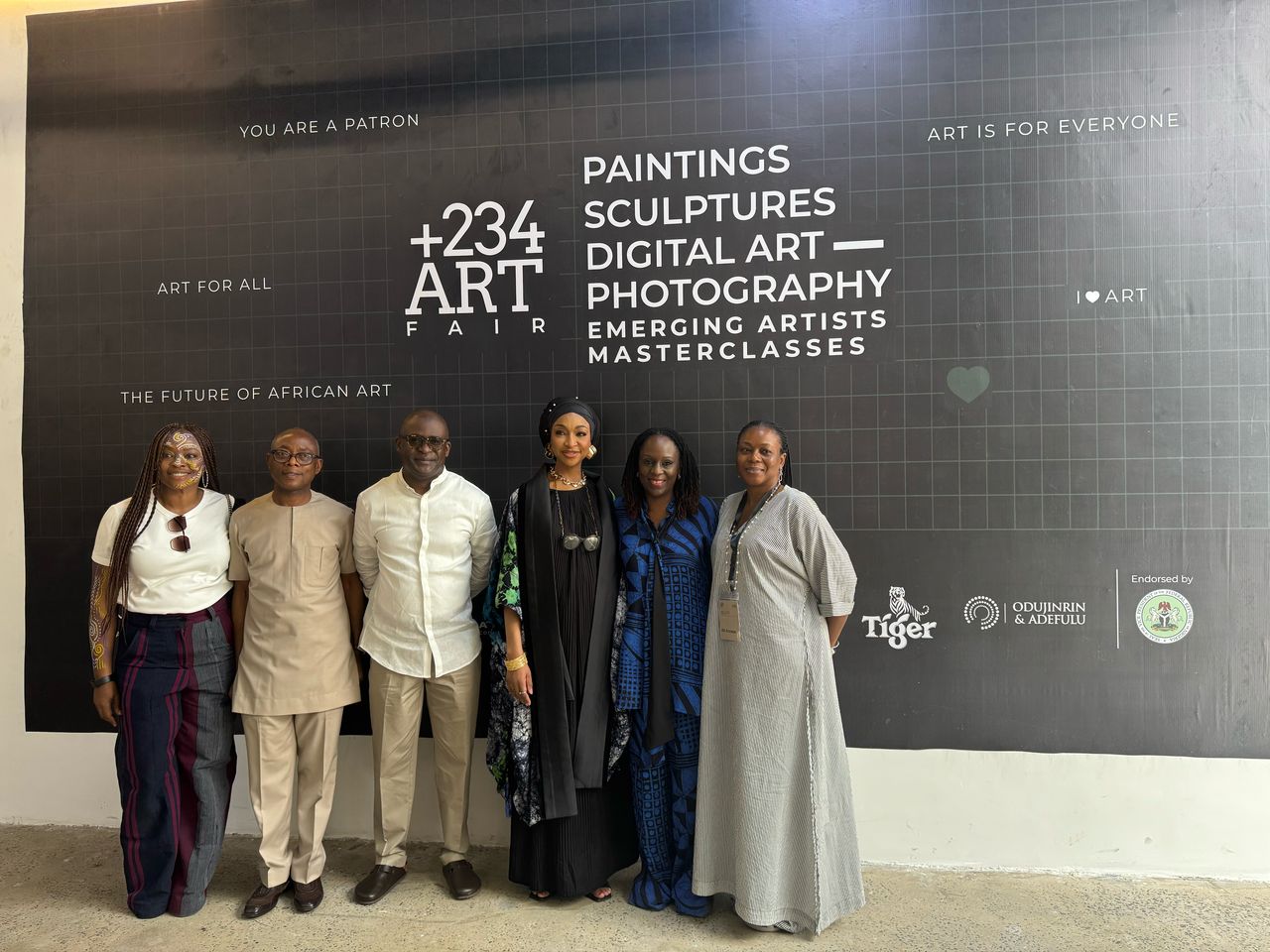 Left to right: Omoboye Odu, Head of SME, Partnership and Collaboration, Ecobank Nigeria; Kola Adeleke, Executive Director of Commercial Banking, Ecobank Nigeria; Bolaji Lawal, Managing Director/Regional Executive, Ecobank Nigeria; Hannatu Musa Musawa, Minister of Art, Culture and Creative Economy; Mrs. Tola Akerele, Founder of +234 Art Fair and Soto Gallery; and Ms. Toyin Laoshe, Project Director of the +234 Art Fair, at the Art Fair held at the Ecobank Pan African Centre in Lagos.