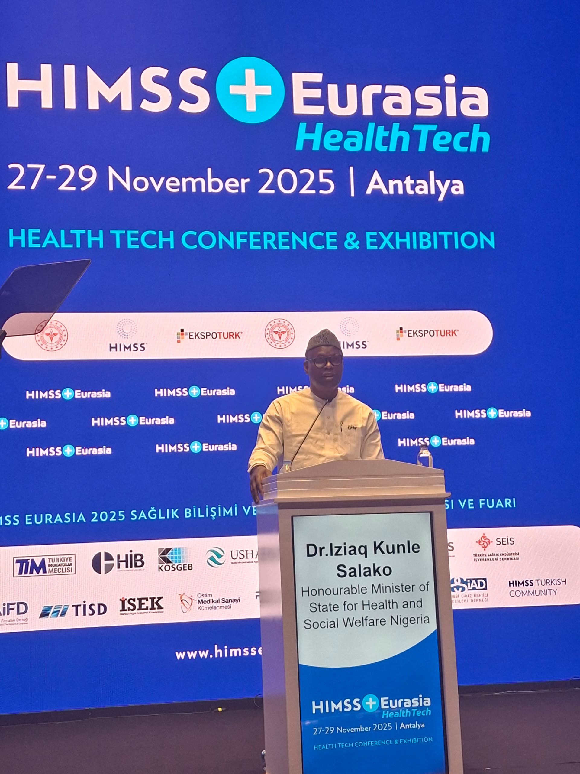 Nigeria has reinforced its leadership role in advancing digital health, as the Minister of State for Health and Social Welfare, Dr. Iziaq Adekunle Salako, delivered an inspiring keynote at the HIMSS Eurasia HealthTech Conference & Exhibition on November 26, 2025. Speaking at the Susesi Luxury Resort in Belek–Antalya, Dr. Salako highlighted Nigeria’s unwavering commitment to harnessing technology-driven solutions to transform healthcare delivery and strengthen global collaboration in health innovation.