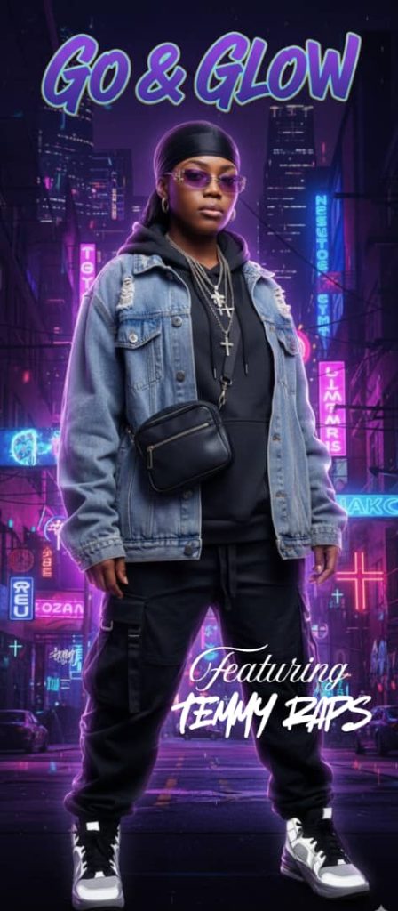 The new song ‘Go and Glow: Holy Ghost Drill’ is an upbeat, urbane soulful R & B brain and body mover with a rich baseline and dancehall feel with rap, English and Yoruba rhymes. It features 17-year-old Temmy Raps.