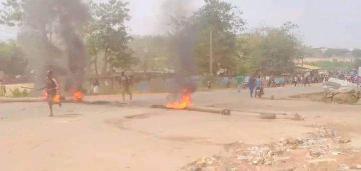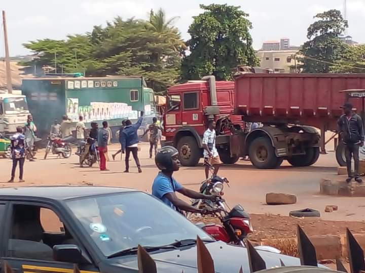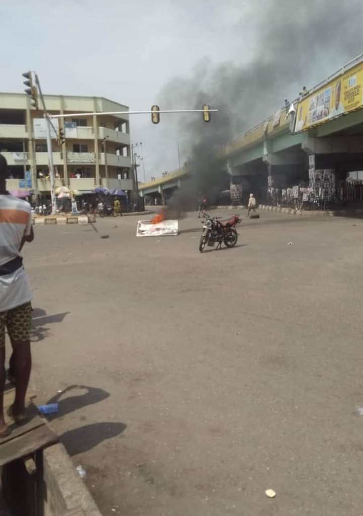 On Tuesday afternoon, the protesters blocked the busy Obantoko road, setting bonfires on the main road.